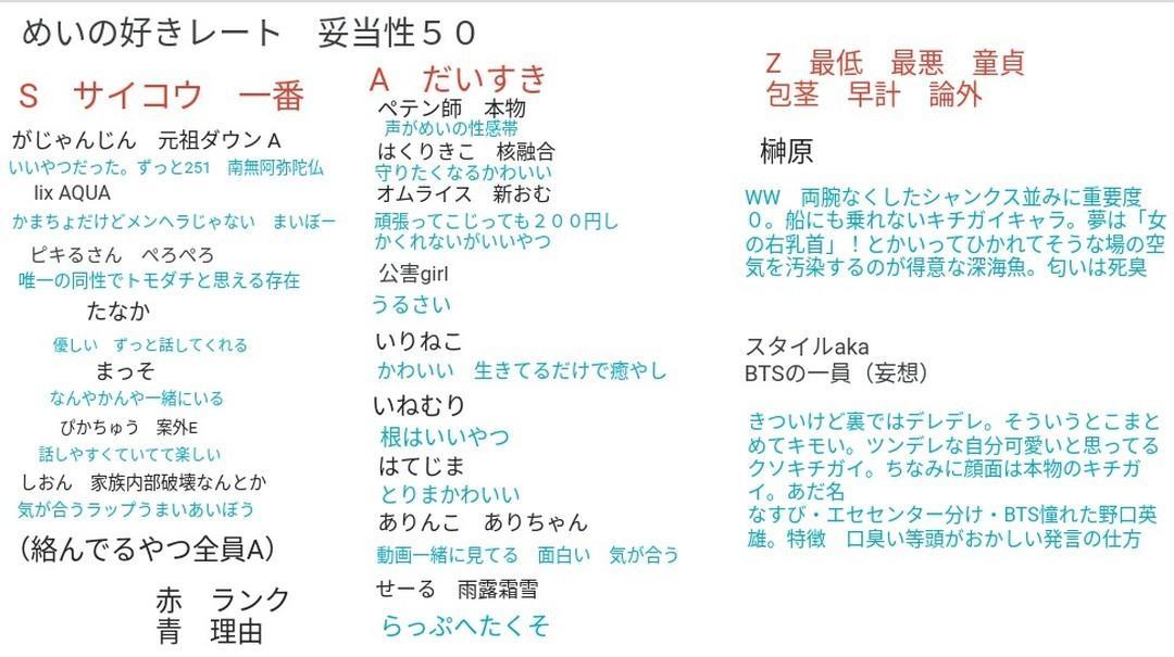 おむらいすから「リアコ製造機」と認定される。 彼女自身「めいはたらしじゃない!」と断定をしているとのこと。現在 まっそ との交際は不明。