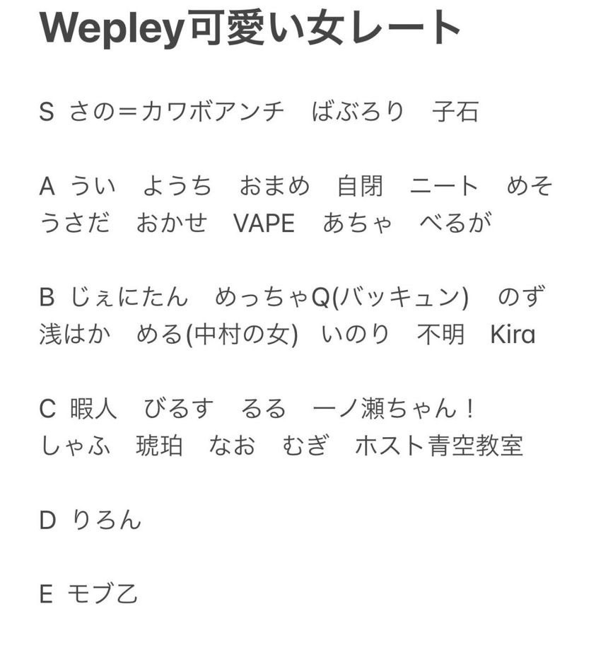 - WePlayかわいい女の子レート は削除されています。