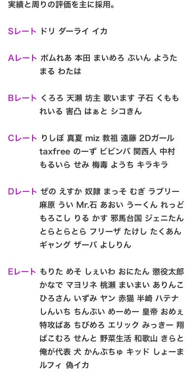 本ページは、喧嘩レート表を掲載しています。