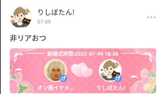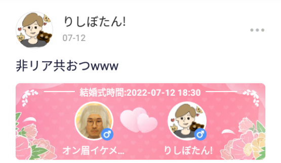 2022年7月9日と7月12日にかすと結婚した。短期間に二度も結婚式を挙げたのは、祝い金目当てだろうか。