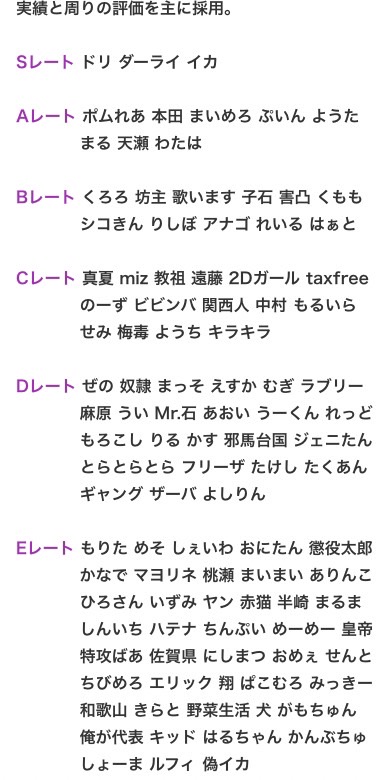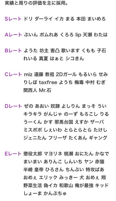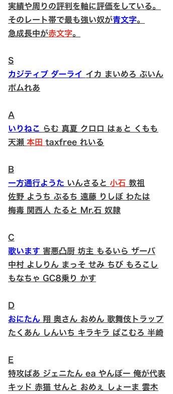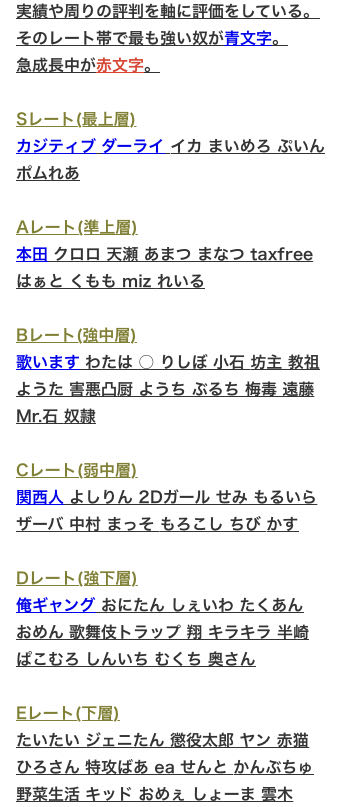 そのレート帯で最も強い奴が青文字。
