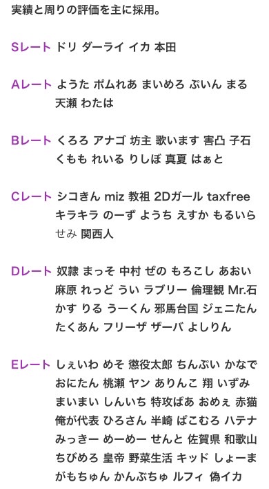 本ページは、喧嘩レート表を掲載しています。